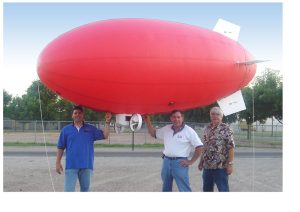 The 14′ Remote Control Nylon blimp is perfect for small sporting events outdoor concerts and fairs. This blimp can accommodate larger banners for increased visibility and larger payloads. The Aeroblimp 14 comes standard with a selective drop device for dropping coupons, brochures, tickets and small premiums. The RCO-14 can support our broadcast-quality video arena screen system with full pan and tilt features for direct links to indoor stadium screens and network television systems. Complete hull painting is available for team, sponsor or mascot logos. Two digitally printed contour banners are available.