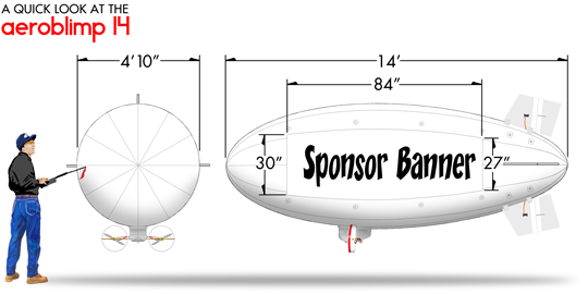 Starting at 14’ long, the Nylon Aeroblimp 14 is smallest yet it is still highly maneuverable. It offers the same unique flying and advertising capabilities as the larger models but for reduced space venues such as high schools, small parks, or fields.