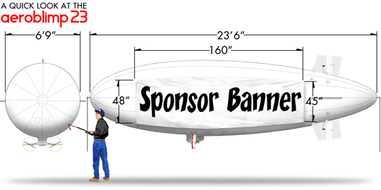 The 23′ Remote Control Nylon blimp is perfect for small sporting events outdoor concerts and fairs. This blimp can accommodate larger banners for increased visibility and larger payloads. The Aeroblimp 23 airship is also available with an internal lighting system. The RCO-23 can support our broadcast-quality video arena screen system with full pan and tilt features for direct links to indoor stadium screens and network television systems. Complete hull painting is available for team, sponsor or mascot logos. Two digitally printed contour banners are available.