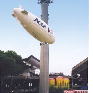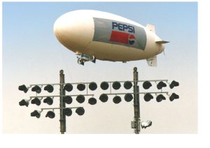 The 32′ Remote Control Nylon blimp is perfect for large sporting events outdoor concerts and fairs. This blimp can accommodate larger banners for increased visibility and larger payloads. The Aeroblimp 32 Airship is also available with an internal lighting system. The RCO-32 can support our broadcast-quality video arena screen system with full pan and tilt features for direct links to indoor stadium screens and network television systems. Half the hull can be painted for team, sponsors or company logos. Two digitally printed contour banners are available.