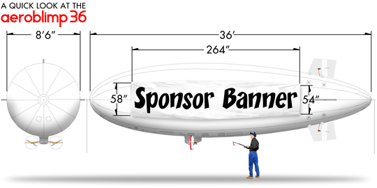 The 36′ Remote Control Nylon blimp is perfect for large sporting events outdoor concerts and fairs. This blimp can accommodate larger banners for increased visibility and larger payloads. The Aeroblimp 36 Airship is also available with an internal lighting system. The RCO-36 can support our broadcast-quality video arena screen system with full pan and tilt features for direct links to indoor stadium screens and network television systems. Half the hull can be painted for team, sponsors or company logos. Two digitally printed contour banners are available.