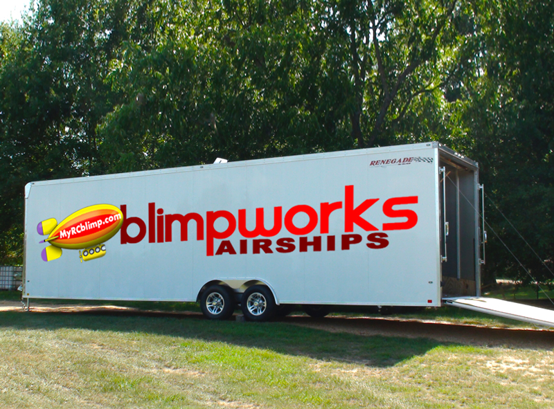 Your Blimpworks Blimp can be easily transported to your site in an enclosed trailer. When on site, the blimp can be moved out with ease and ready to fly. Also a great place for storing your Outdoor and Indoor Blimp. The trailers come in different sizes and can be custom made and design for your uses.